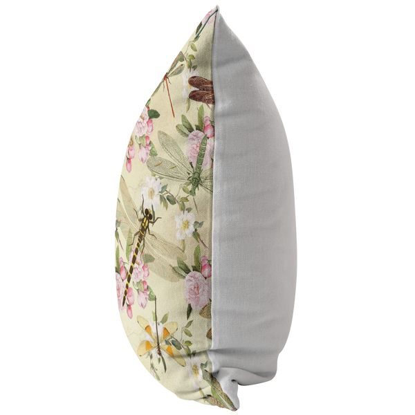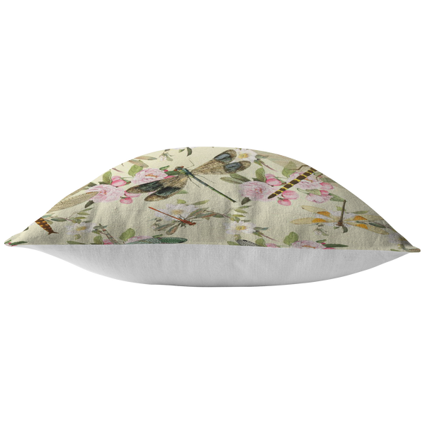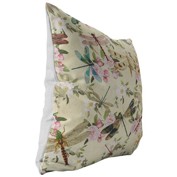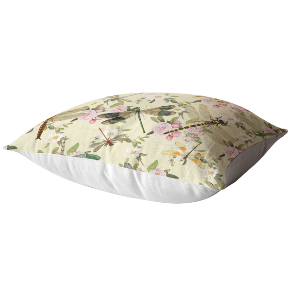 Dragonflies and Flowers Pink Blue Green Pillow or Pillow Cover | Spring Home Decor | Easter Decorations