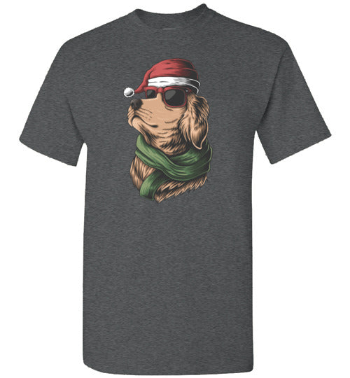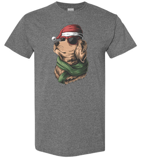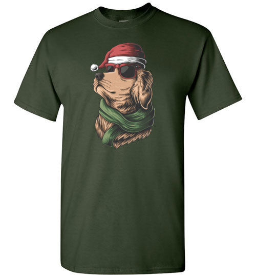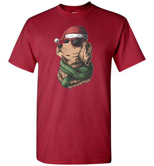Golden Retriever Wearing a Santa Hat and Sunglasses Christmas Shirt