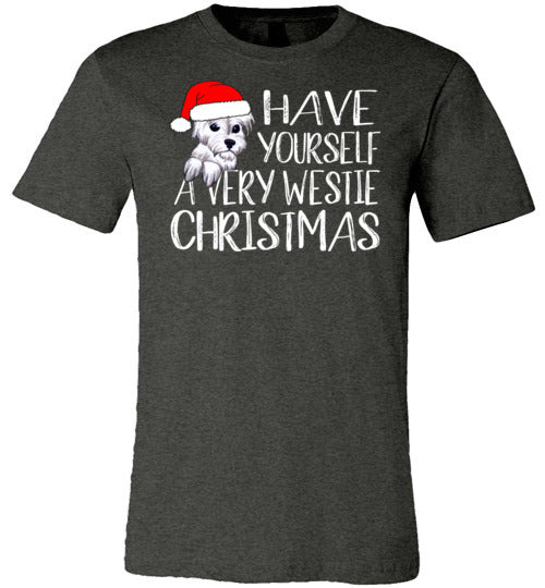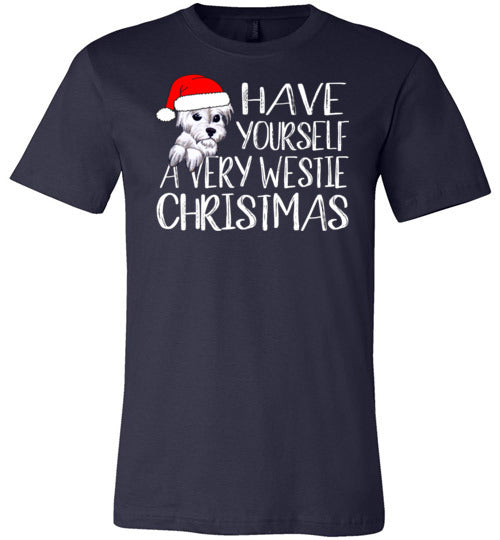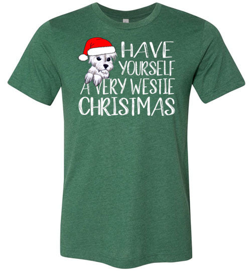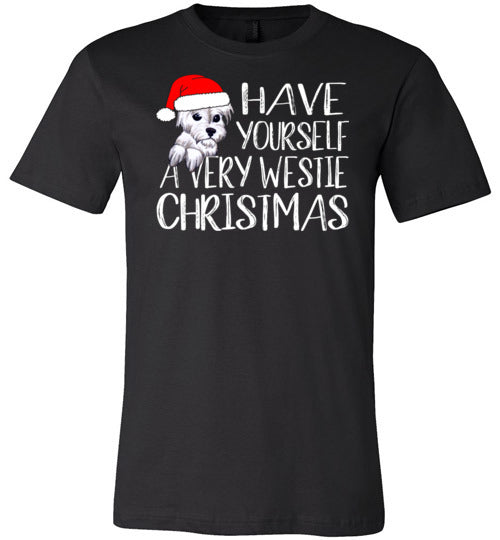 Have Yourself a Very Westie Christmas shirt. A cute West Highland White Terrier gift for westie lovers of all ages. Unisex sizing.