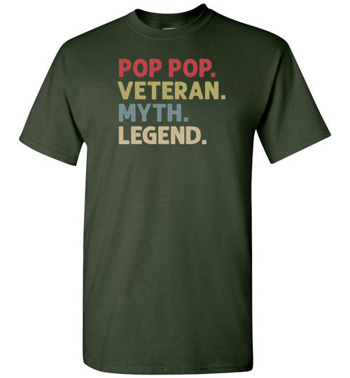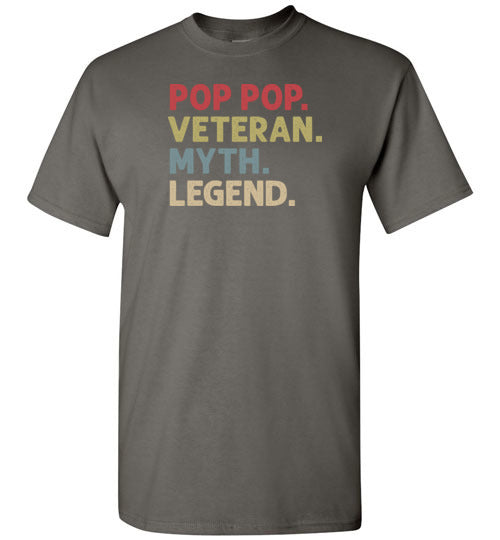 Pop Pop Veteran Myth Legend shirt for men. Makes a great Christmas gift, Father's Day or birthday gift from grandson or granddaughter for any grandpa called Pop Pop who is a military veteran.