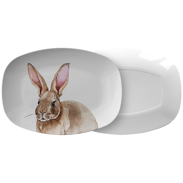 This 10x14 Easter serving platter features a cute brown watercolor rabbit or bunny. Available individually or in a set of 2 or 4. Manufactured from revolutionary ThermoSāf® Polymer that is: