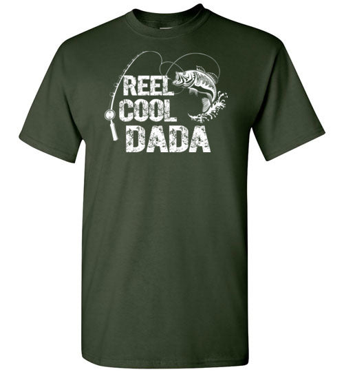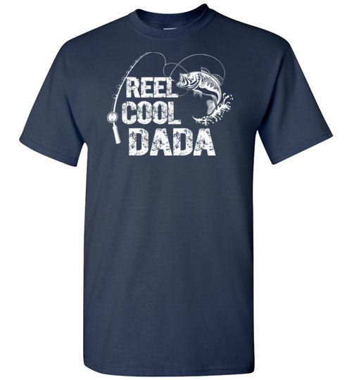 Reel Cool Dada crewneck t-shirt for men. Makes a great Christmas gift, Father's Day or birthday gift idea from kids or grandkids for any dad or grandpa called Dada who loves to fish.