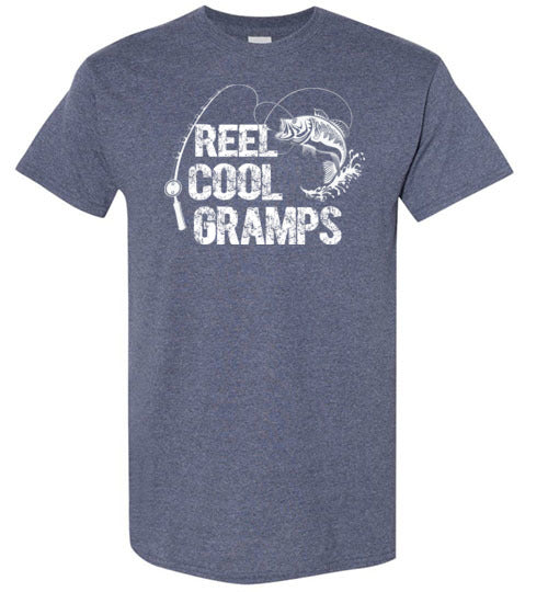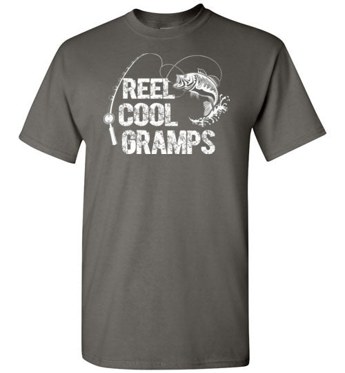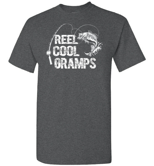 Reel Cool Gramps crewneck t-shirt for men. Makes a great Christmas gift, Father's Day or birthday gift idea for any grandpa called Gramps who loves to fish.