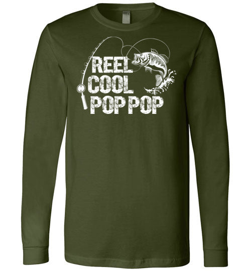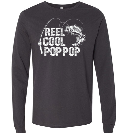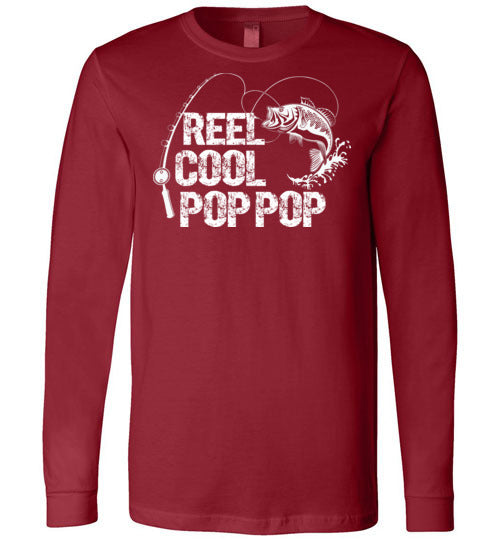 Reel Cool Pop Pop long sleeve shirt for men. Makes a great Father's Day gift, Christmas gift or birthday present for any grandpa callecd Pop Pop who loves fishing.