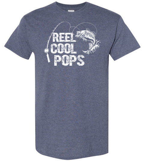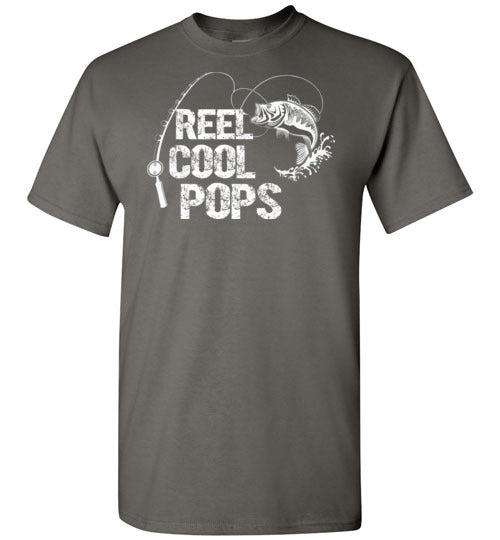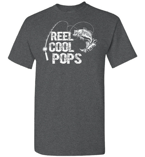 Reel Cool Pops crewneck t-shirt for men. Makes a great Christmas gift, Father's Day or birthday gift idea for any grandpa called Pops who loves to fish.