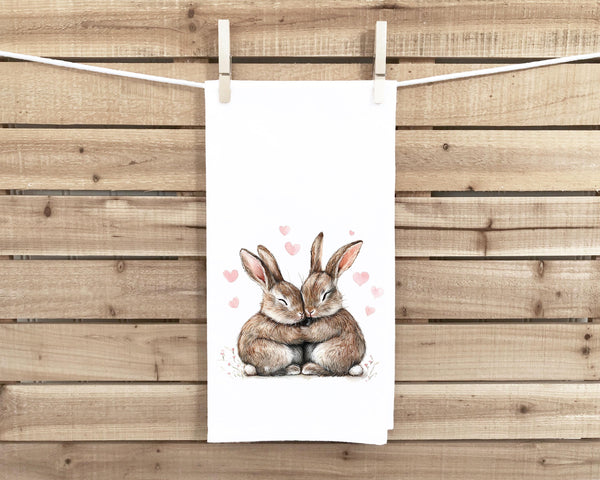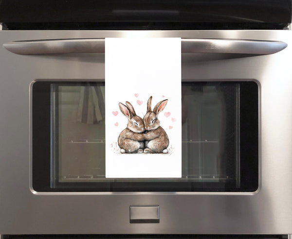Add some love to your kitchen with this adorable pair of loved up bunnies sharing a sweet moment. This sweet flour sack hand towel makes the perfect birthday, Christmas, housewarming, Mother's Day or Valentine's Day gift idea for bunny lovers or animal lovers in general.Use it for baking, cooking, crafting, dusting, wiping up spills, straining flour or water, polishing surfaces, as a decorative addition to your kitchen or bath or as a dish cloth.What's so special about flour sack towels and why are they so popular? Flour sack towels are made from tightly woven cotton which creates a strong and durable material. They got their name because they were originally made from the same type of cotton sacks that were used to store flour. They are known for their high absorbency and softness, making them perfect for many different uses in the kitchen and home such as drying dishes, wiping up spills and covering dough while it rises. They can also be used as a makeshift cheesecloth to strain liquids and they make an interesting decorative addition to your kitchen or in the bathroom as a cute hand towel for guests.• 100% Cotton