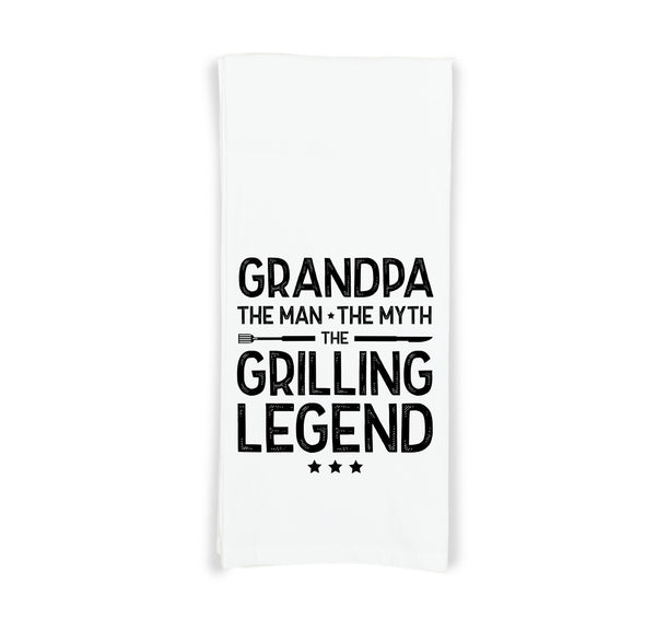 Grandpa the Man the Myth the Grilling Legend 100% cotton flour sack towel is the perfect addition to any home with a dad who loves to grill. It measures 28x28 inches, making it the perfect size for drying dishes at the kitchen sink or drying hands in the bathroom. Use it for baking, cooking, crafting, dusting, wiping up spills, straining flour or water, polishing surfaces, as a decorative addition to your kitchen or bath or just as a dish cloth!• 100% Cotton