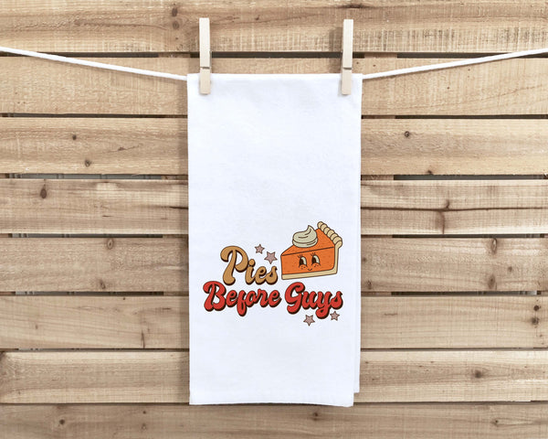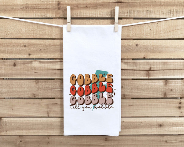 Set of 3 Thanksgiving Flour Sack Kitchen Towels Pies Before Guys Gobble Till You Wobble Turkey Gravy Casserole Housewarming Hostess Gift