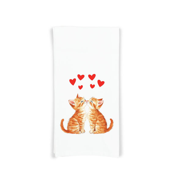 Add some kitty love to your kitchen with this adorable pair of loved up orange tabby cats sharing a sweet moment. This sweet flour sack hand towel makes the perfect birthday, Christmas, housewarming, Mother's Day or Valentine's Day gift idea for cat lovers.Use it for baking, cooking, crafting, dusting, wiping up spills, straining flour or water, polishing surfaces, as a decorative addition to your kitchen or bath or as a dish cloth.What's so special about flour sack towels and why are they so popular? Flour sack towels are made from tightly woven cotton which creates a strong and durable material. They got their name because they were originally made from the same type of cotton sacks that were used to store flour. They are known for their high absorbency and softness, making them perfect for many different uses in the kitchen and home such as drying dishes, wiping up spills and covering dough while it rises. They can also be used as a makeshift cheesecloth to strain liquids and they make an interesting decorative addition to your kitchen or in the bathroom as a cute hand towel for guests.• 100% Cotton