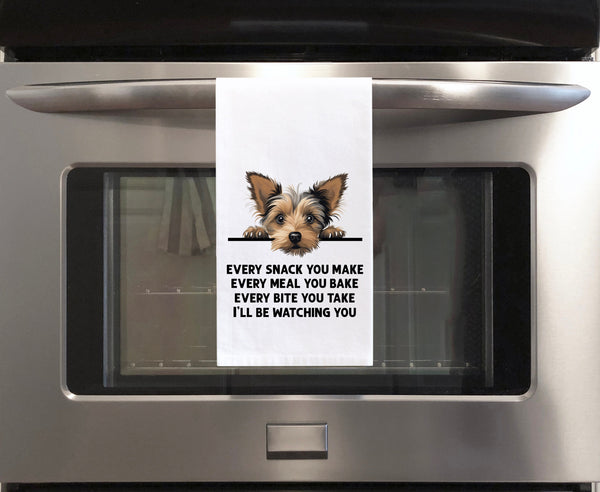 Yorkshire Terrier Every Snack You Make Every Meal You Make Flour Sack Kitchen Towel Peeking Dog Dish Cloth Hostess Birthday Christmas Gift