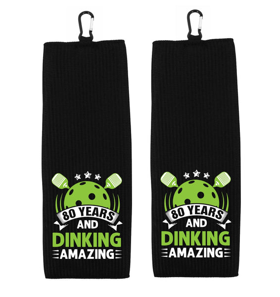 80 Years and Dinking Amazing Tri-fold Sport Towel with Clip 100% Microfiber Black Waffle Weave Gift Idea for Pickleball Lover 80th Birthday