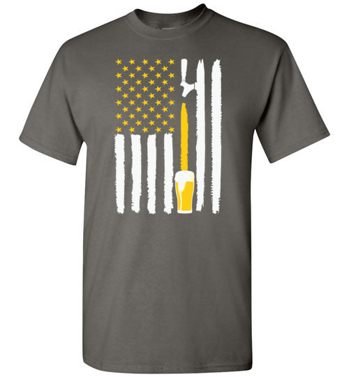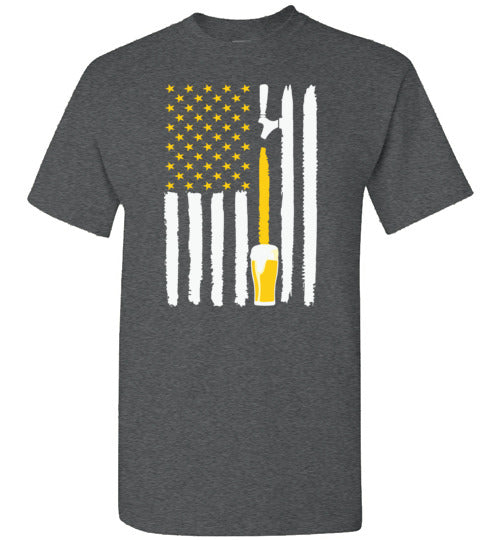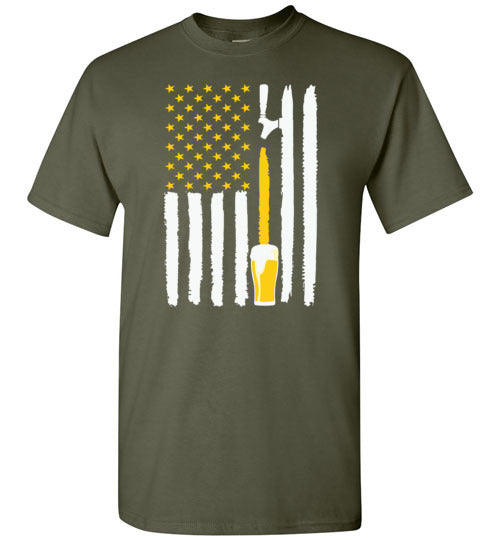 American Flag craft beer shirt for men. A cool, patriotic design that makes a great Christmas gift, Fathers Day, 4th of July, St. Patrick's Day present or birthday gift idea for beer lovers, bar owners, bartenders, dad, grandpa, husband, boyfriend, uncle, brother and any man who enjoys drinking beer, craft beer and IPA beers.