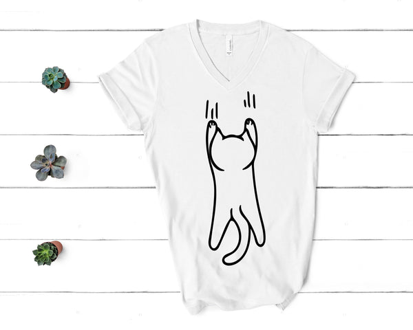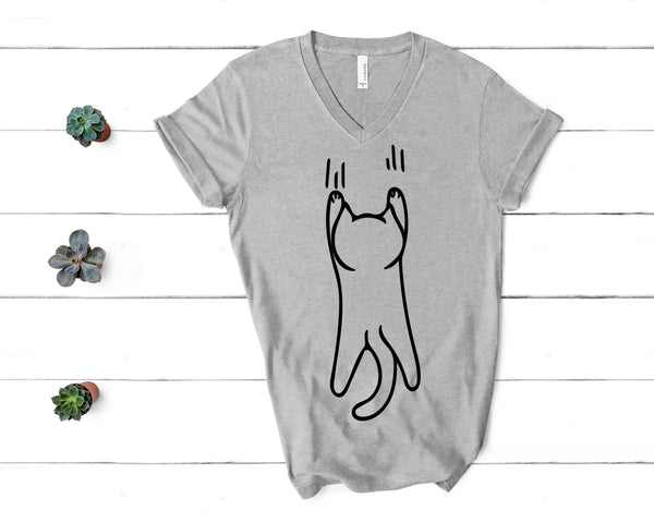 This cute shirt features a cat holding on with his sharp little claws to the shirt of his cat mom or cat dad. Unisex v-neck tee for women or men who love theirs kitties. A fun cat mama or cat papa Christmas gift, Mothers Day present or birthday gift idea for your favorite crazy cat lady or crazy cat guy.
