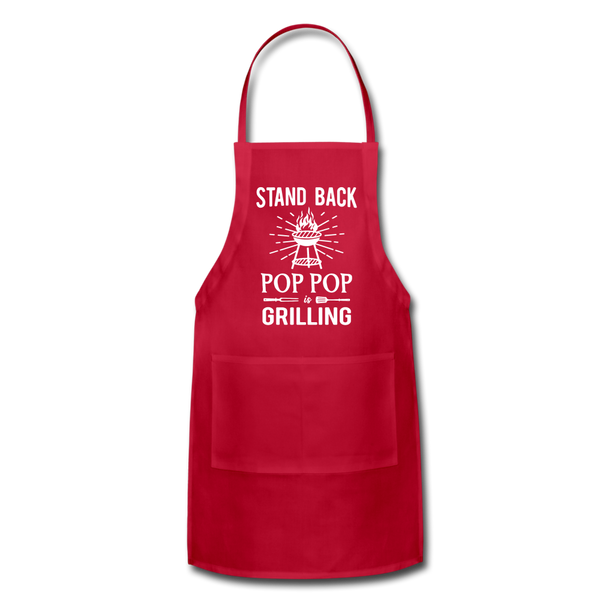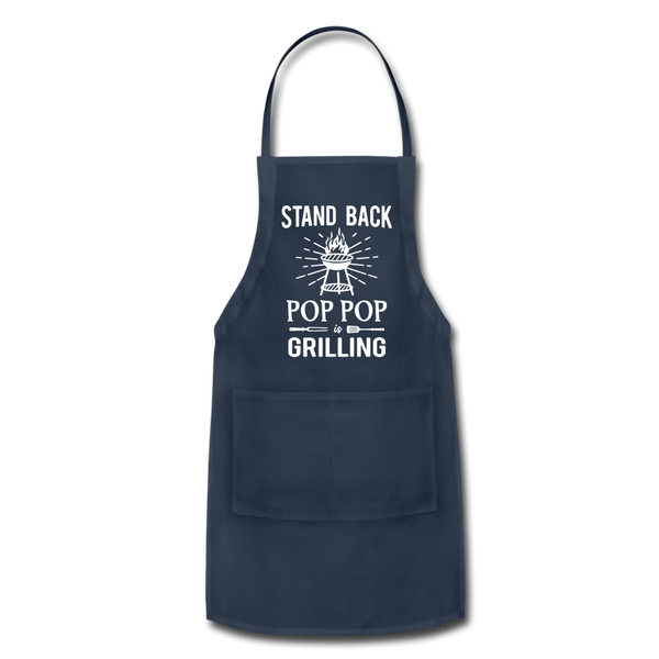 Stand Back Pop Pop Is Grilling adjustable apron for men. Select your grandpa's nickname from the dropdown box when ordering. Makes a great birthday, Christmas or Father's Day gift for any grandfather who loves to grill and cook. The last layer of defense against spillage of all sorts, this adjustable apron is a wonderful gift for yourself or a loved one. With plenty of coverage and pockets for utensils, forget cooking classes... this apron is all you need to become a gourmet chef! • 100% cotton | Fabric weight: 3.2oz (lightweight) • Over-the-head and around-the-waist adjustable drawstring • 28” wide X 30” long with a split front pocket • Spot cleaning is recommended • Imported product, printed & processed in the USA