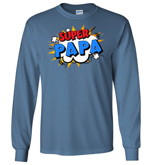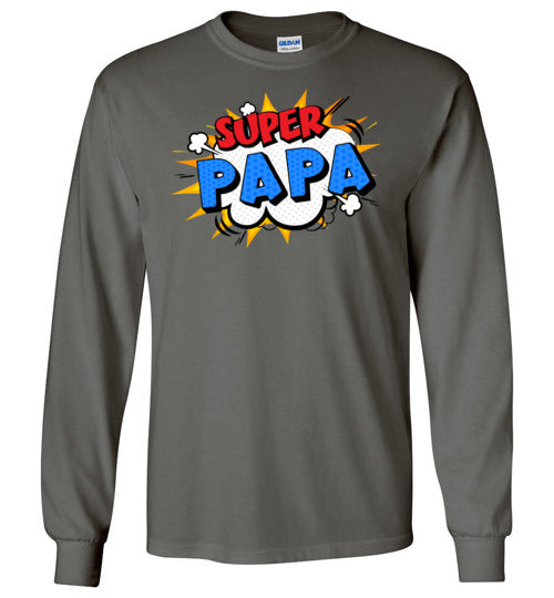 Super Papa long sleeve shirt - retro comic style cartoon bubble design for men who are a dad or grandpa called Papa.