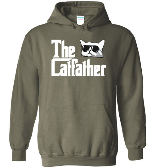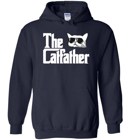 The Catfather long sleeve pullover hoodie sweatshirt for men. Makes a great Father's Day gift idea, birthday gift or Christmas gift for any cool cat loving man.