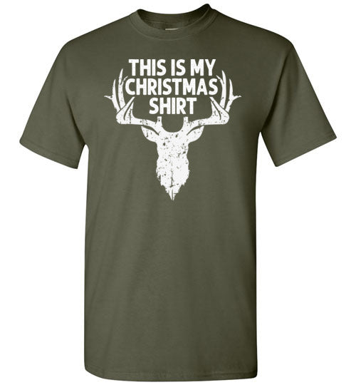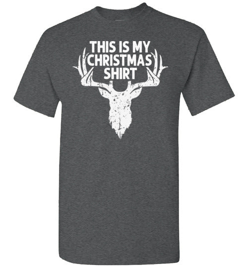 This Is My Christmas shirt with unisex sizing for men, women and kids. A cool t-shirt featuring a distressed buck with antlers.