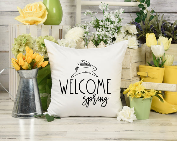 Welcome Spring pillow or pillow cover. A great addition to any cozy Easter or spring home decor.